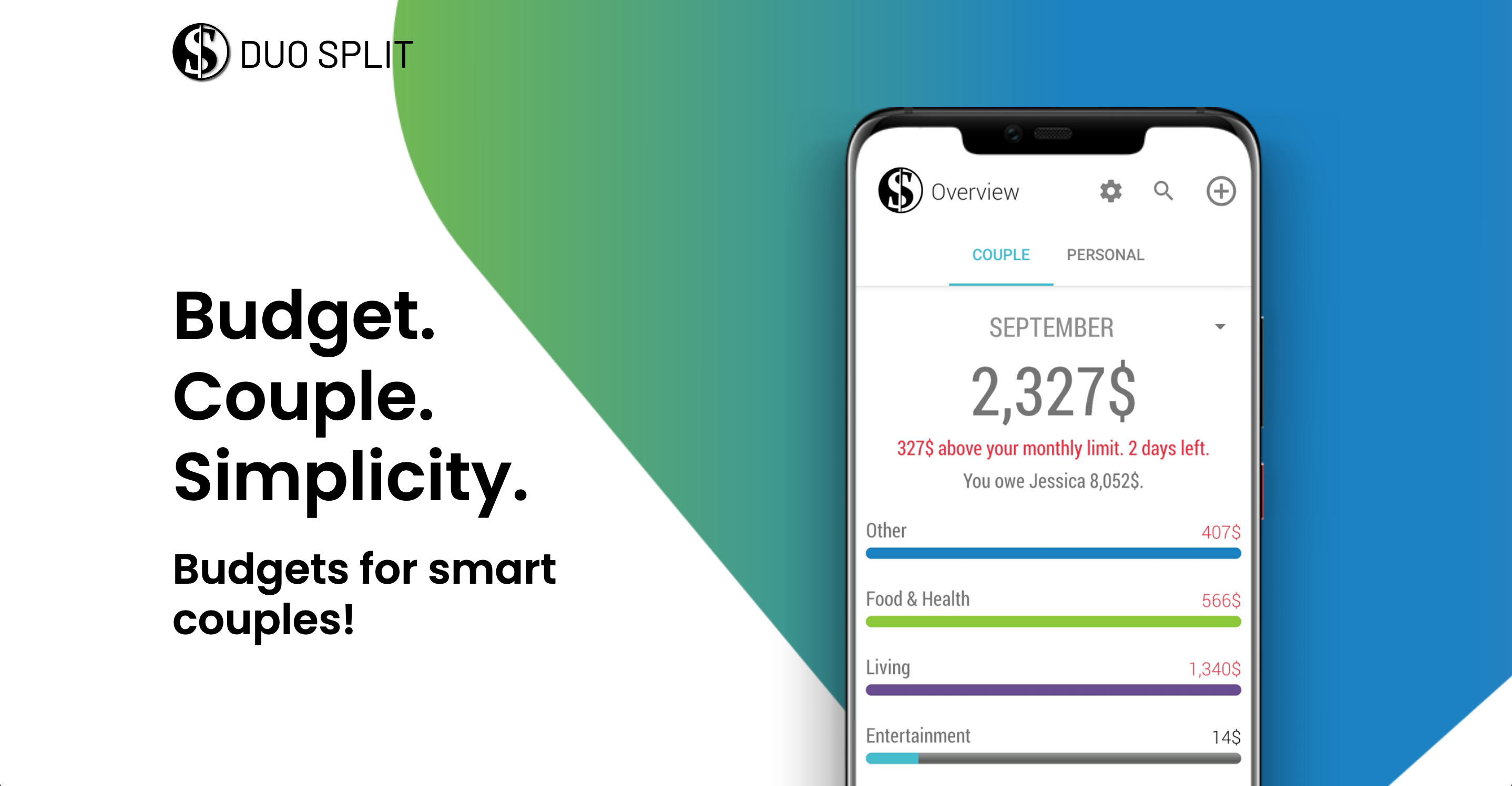 Design and development of the Duo Split mobile app used for managing finances of couples.